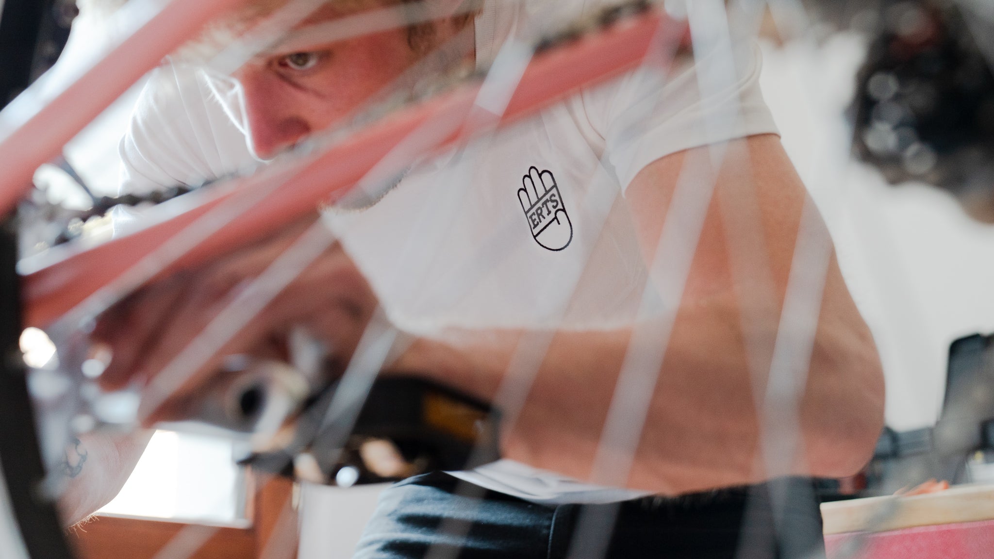 Het merk zet het handwerk en het materiaal dat zich in je fiets verschuilt in de verf. De merknaam herinnert ons aan de grondstoffen: erts is het mineraal waaruit staal gemaakt wordt. Het handje verwijst zowel naar de ambacht van de oorspronkelijke framebouwers uit 1970-'90, als naar het vakmanschap van de fietsenbouwers die vandaag aan Erts werken.